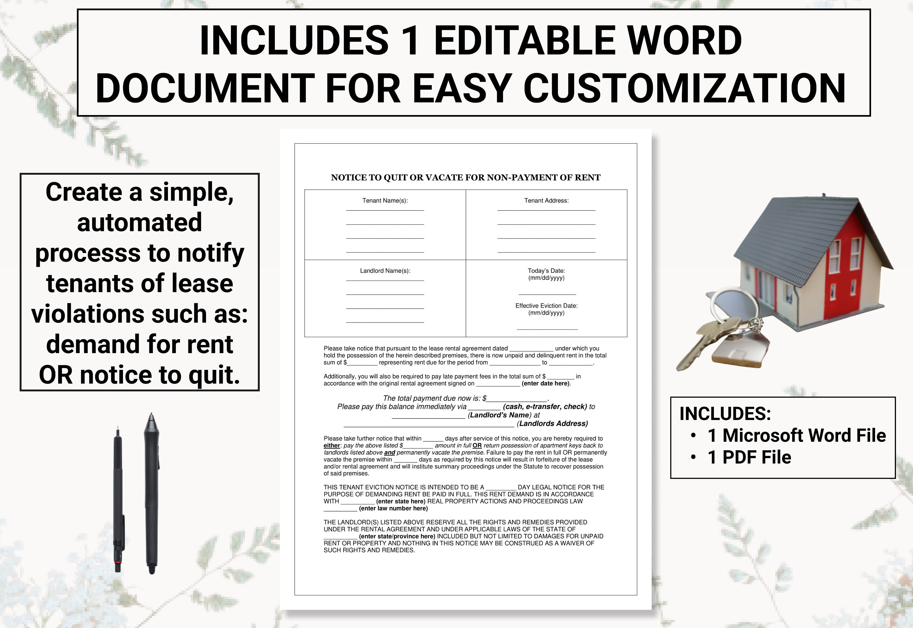 Eviction Notice Demand For Late Rent Template Create An Etsy Canada